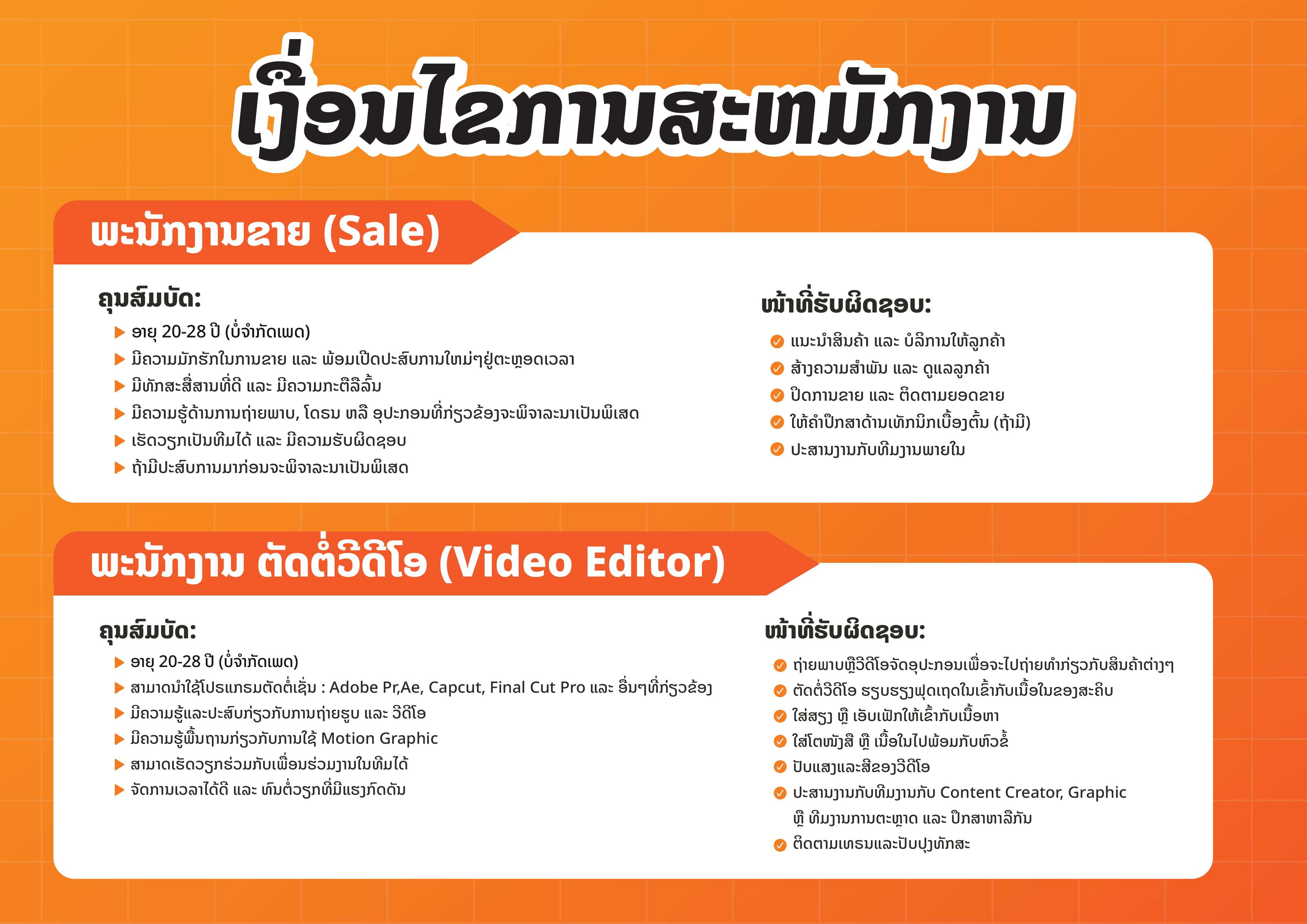 ເງື່ອນໄຂການຮັບສະຫມັກພະນັກງານ ຜູ້ຈັດການຮ້ານ (Manager)